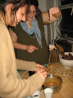 Step 3 Published December 26, 2011 at 300 × 400 in Create: Winter Bird Feeders Step 3: Slather pine cone with peanut butter.